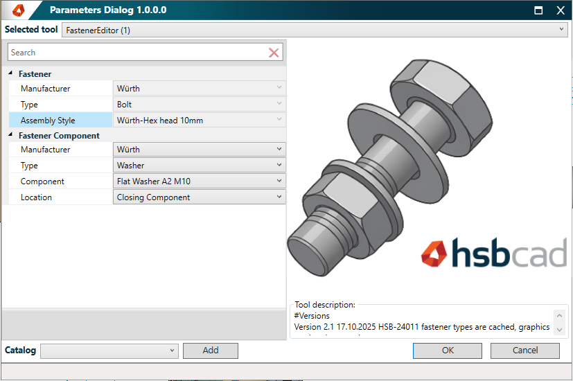 The newly created FastenerAssembly can now be inserted with all its components by using the TSL's or hsb_fa_Add.