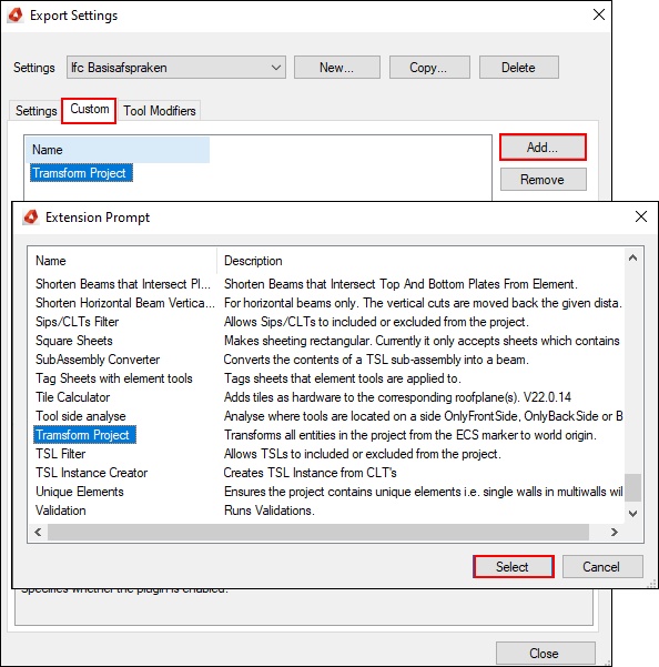 Create your settings for the import and export of a hsbcad model in your design. The extension manager enables you to set up your import and export, by enabling multiple extensions during this process.